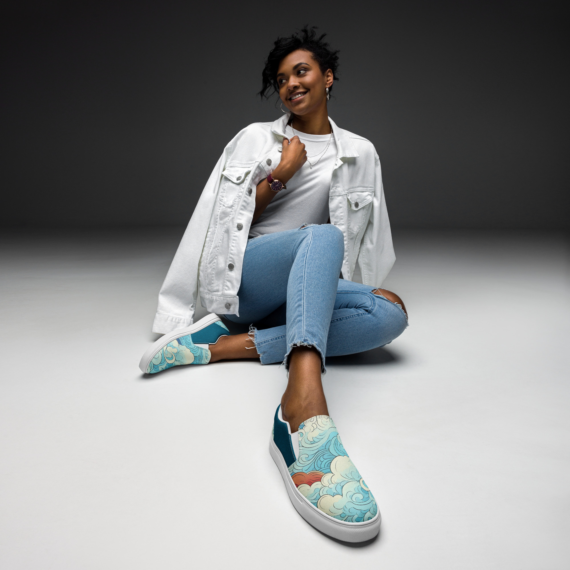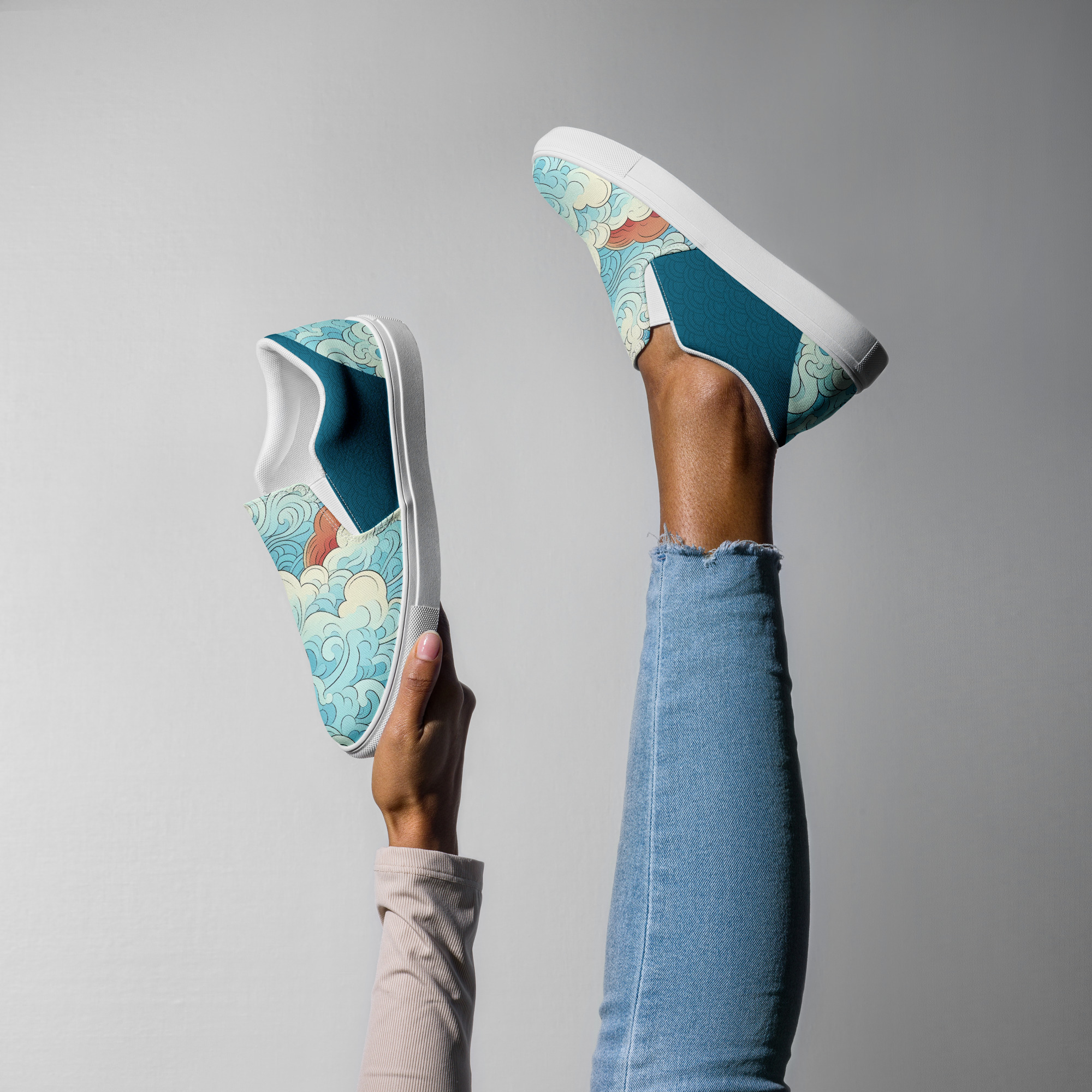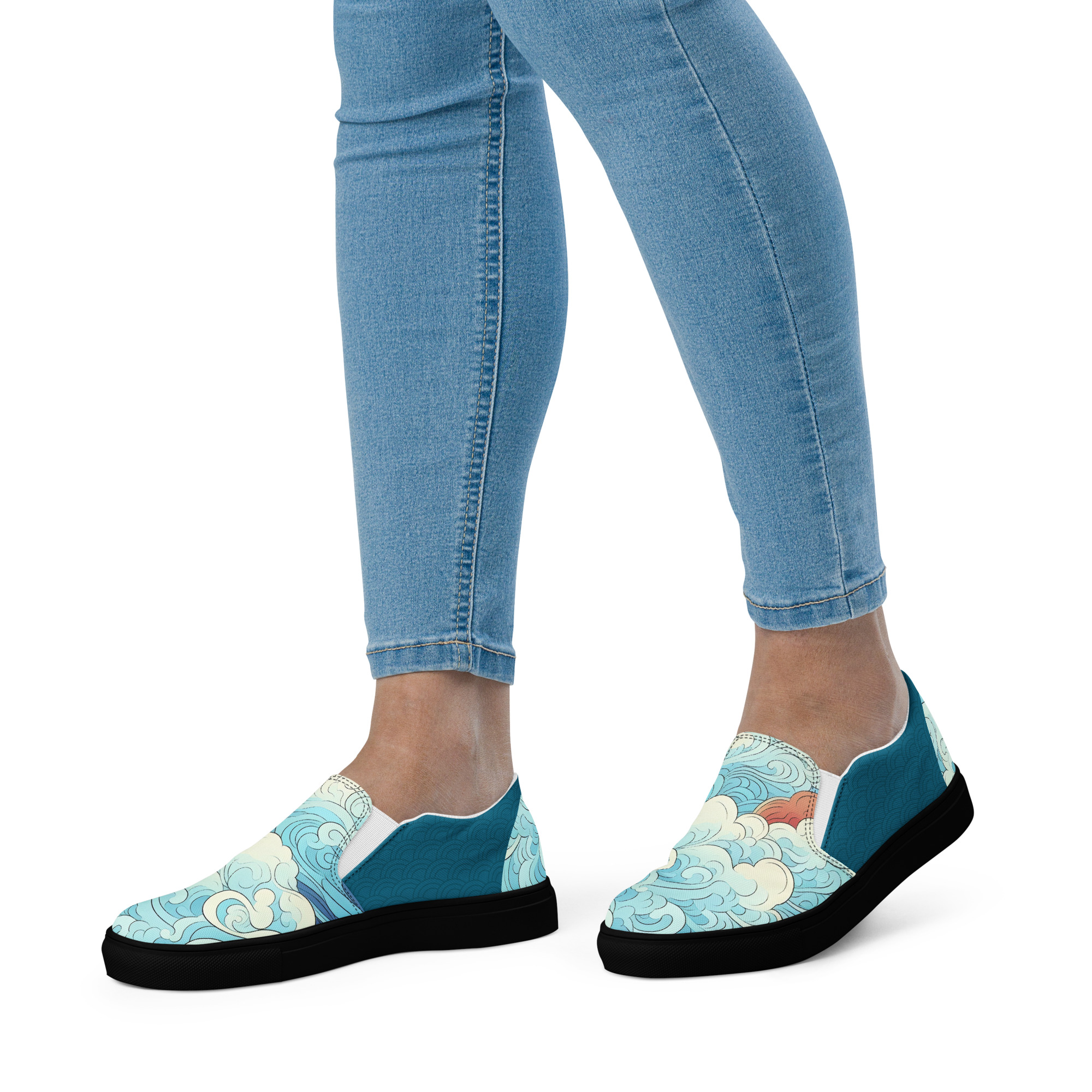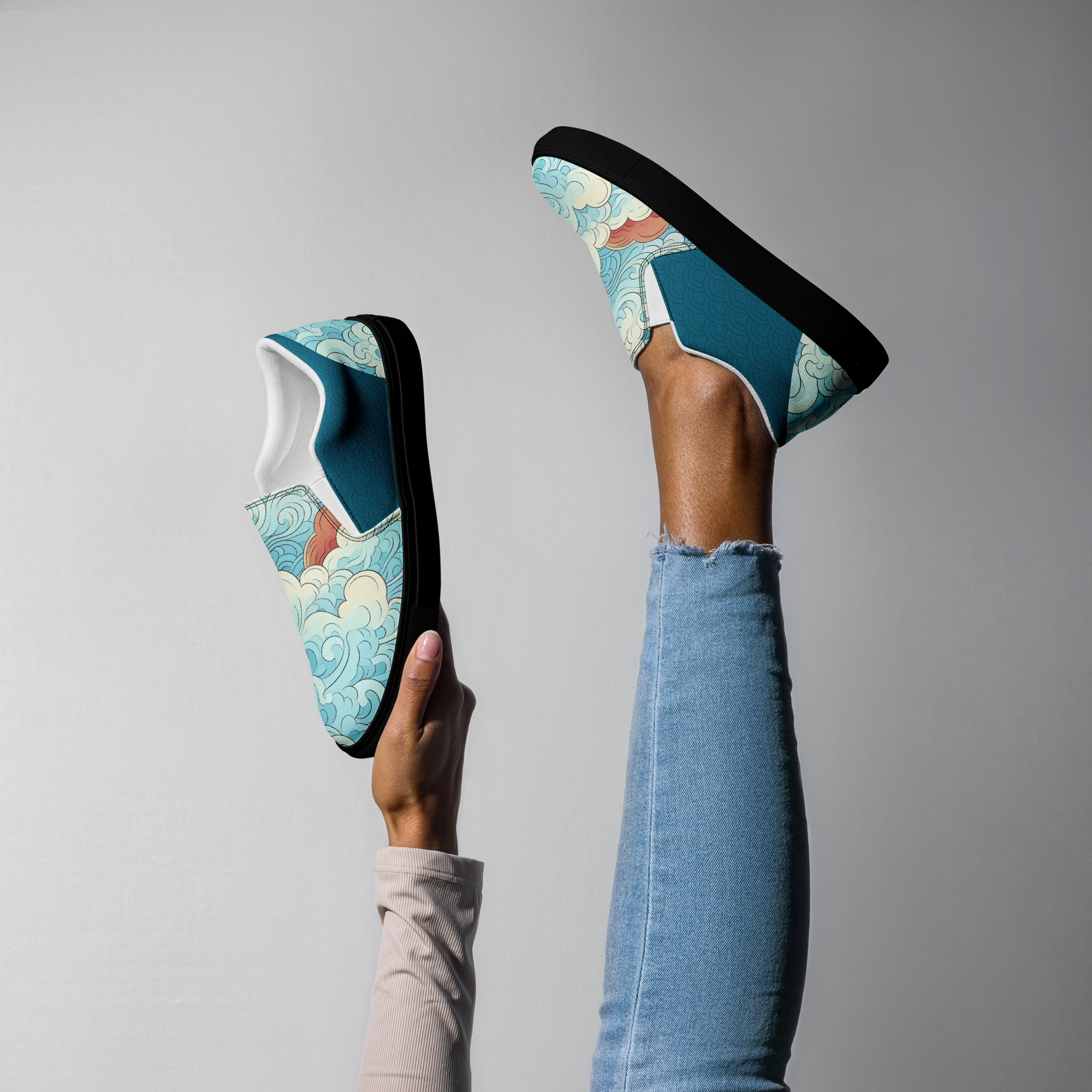 Japanese Ukiyo-e v4 Women’s slip-on canvas shoes